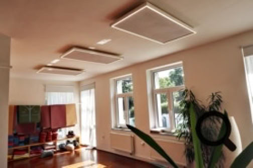 INFRASVĚTLA se nasunují do stropního kříže, který se nejdříve přidělá na strop. Montáž je možná i na sádrokarton nebo palubky. Stropní kříž je součástí infrapanelu.
