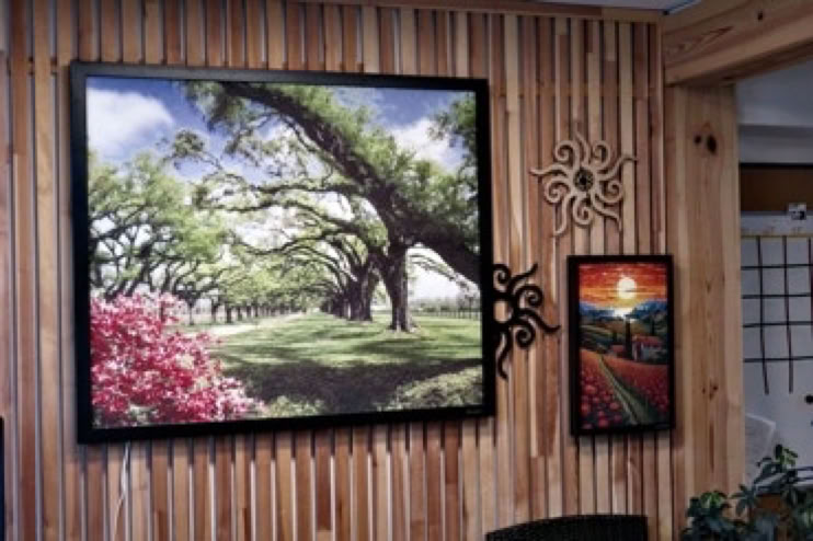 Topné obrazy se montují na stěnu na 4 kotevní body. Umístění infraobrazů je velmi obdobné jako umístění běžných obrazů. Montáž je možná na sádrokarton nebo palubky.